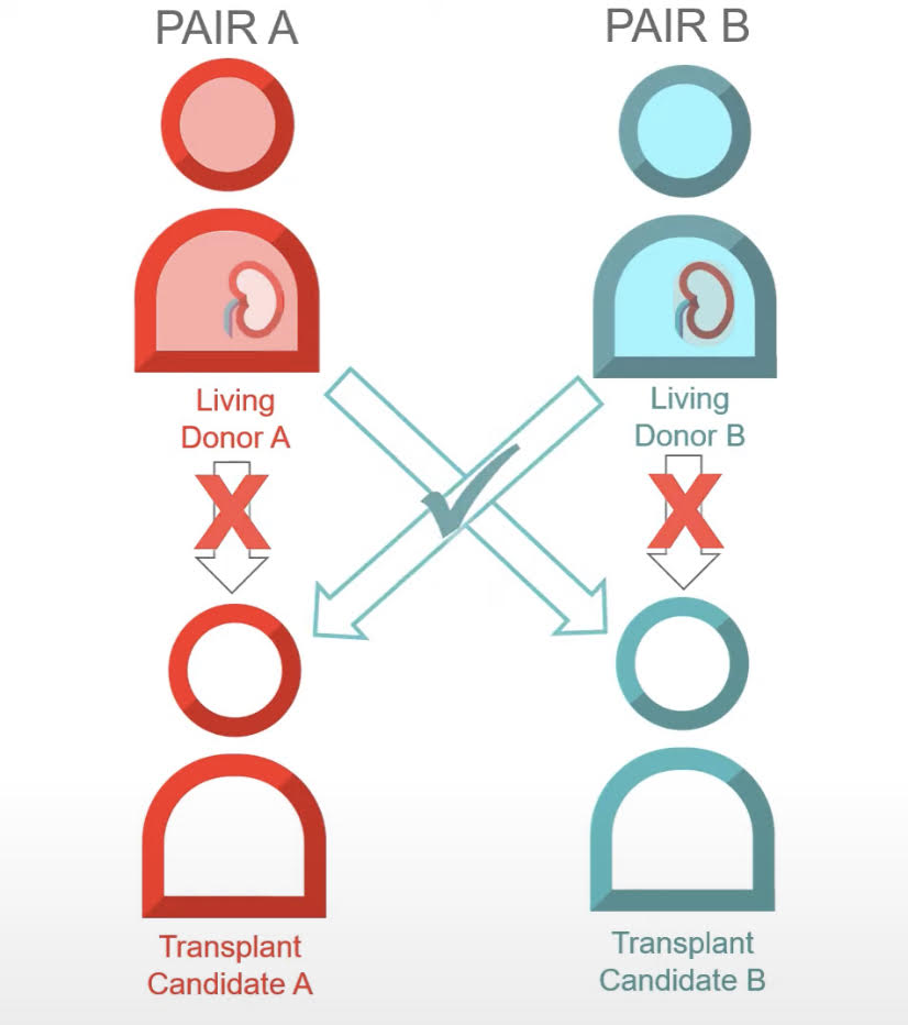 - Fortunately, many of these compatibility problems are surmountable through KPD. For example, suppose Alice needs a transplant and has a brother who is a willing but biologically incompatible donor. And suppose their neighbor also needs a transplant and also has a willing but biologically incompatible donor. It looks like both recipients would be tragically unlucky in this circumstance. However, with KPD, Alice’s brother may be a match with the neighbor, and the neighbor’s donor may be a match with Alice, thus enabling a happy outcome for all. The more incompatible pairs in the pool, the more likely it is that two will be a match.